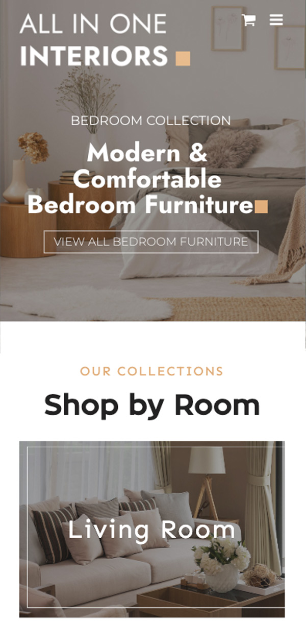 All In One Interiors‘ offer high quality furniture at reasonable prices, their goal is to enabling customers to achieve their interior design visions without breaking the bank. With a focus on high quality visuals and functionality, we crafted a modern website that aligns well with the All In One Interiors brand and showcases the exceptional quality of furniture stocked in store.